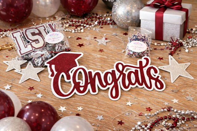 Celebrate your graduate in Bronco style with this burgundy and silver “Congrats” banner, perfect for Lee’s Summit North High School! Designed for graduation, this bold and festive banner adds the perfect touch to your party setup, photo backdrop, or celebration space.