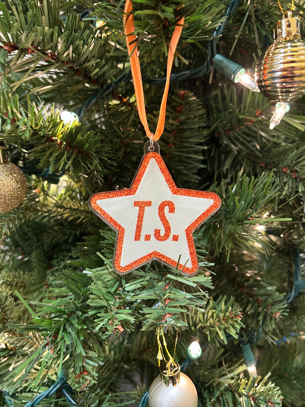 T.S. Faux Orange Glitter Star Acrylic Ornament